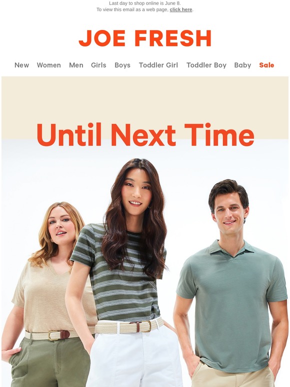 Joe Fresh: Stylish Women's, Men's, & Kids' Clothing | Shop ... FREE SHIPPING on orders $25+ and FREE RETURNS in-store. $8 returns by mail. Shop JoeFresh.com for stylish and affordable clothing for women, men, kids, toddlers, and baby.